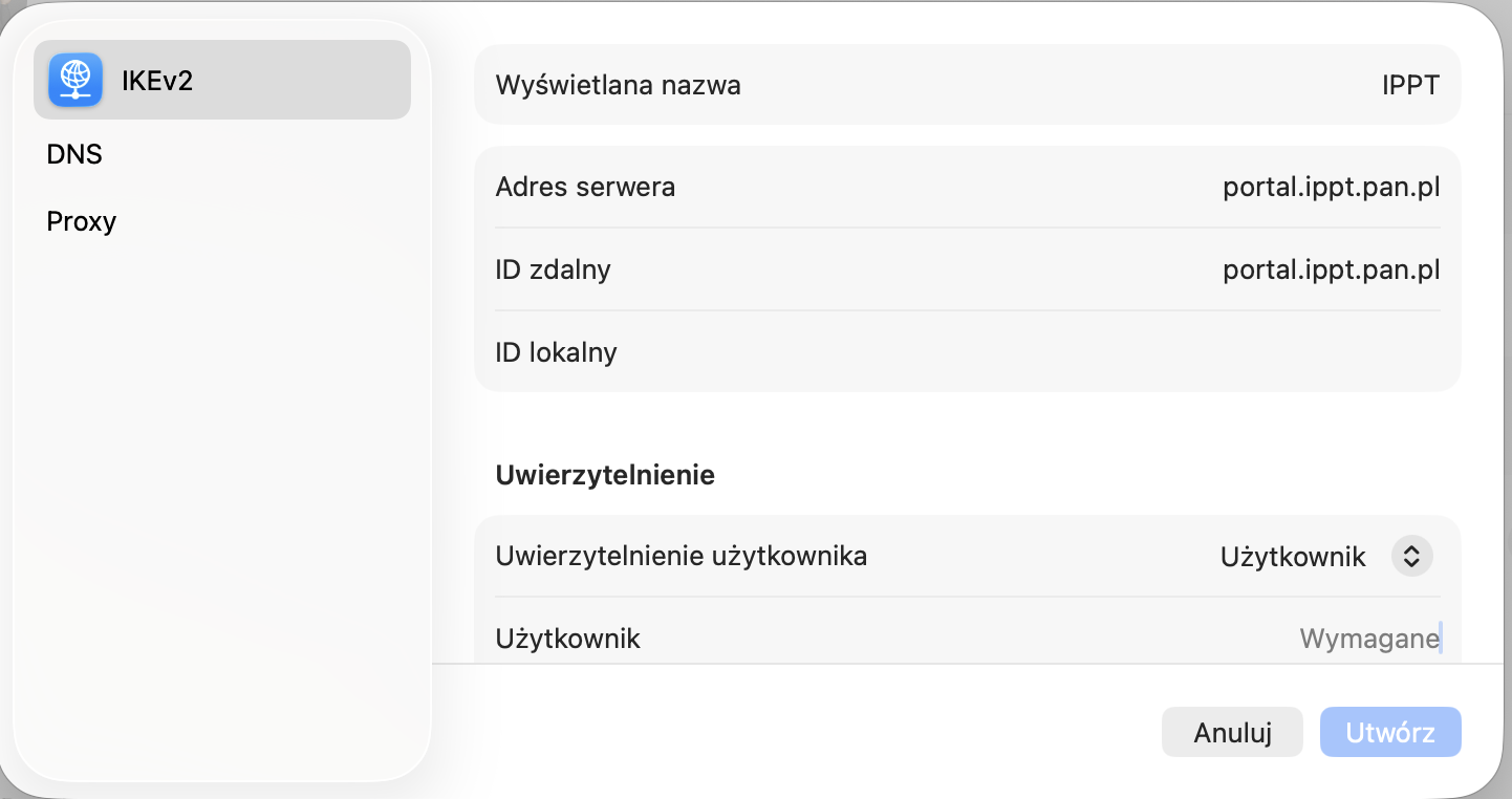 Konfiguracja VPN (IKEv2) na Macu